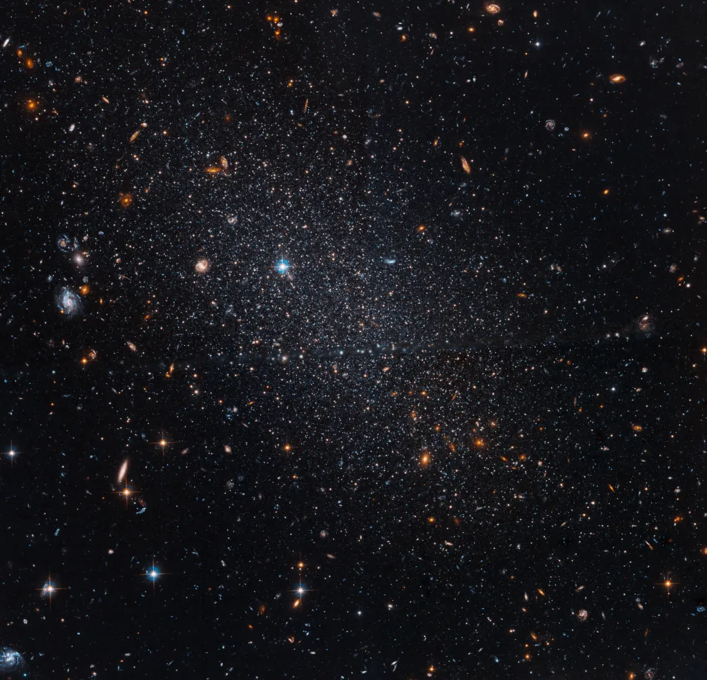 A glittering collection of stars shines against a background of much more distant galaxies in this view from NASA’s Hubble Space Telescope of the Pegasus Dwarf spheroidal galaxy, also known as Andromeda VI.science.nasa.gov