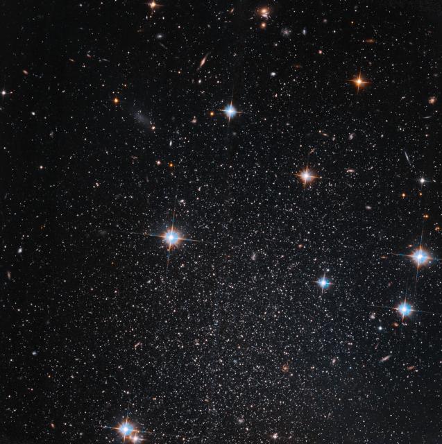 A glittering collection of stars shines against a background of much more distant galaxies in this view from NASA’s Hubble Space Telescope of the PegasusNASA