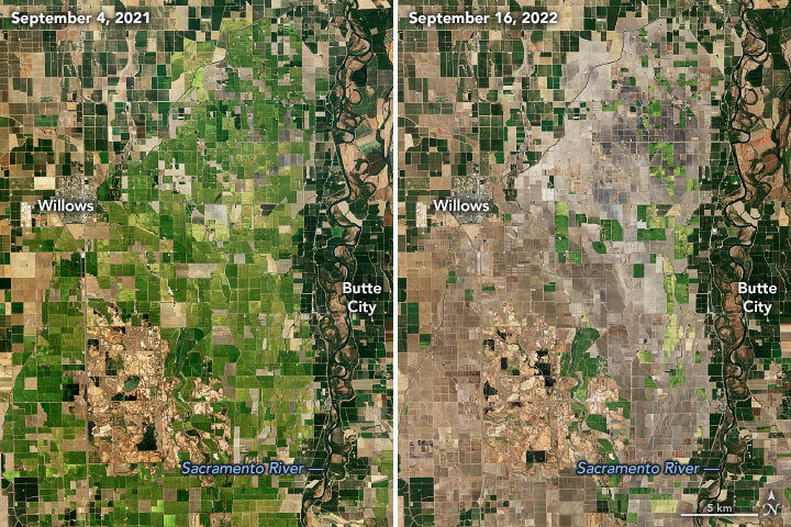 Satellites like #Landsat and Terra helped map a drop in rice acreage during a drought in Sacramento’s Central Valley – normally the largest rice-growing region in California.