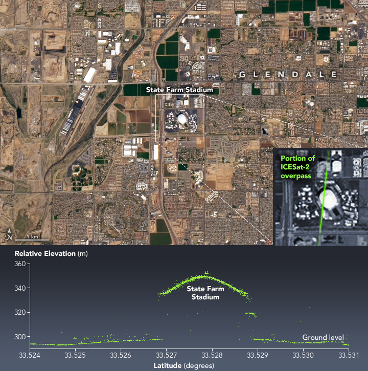 And in 2020, NASA's ICESat-2 satellite measured the relative elevation of the stadium, which stands over 200 feet tall! go.nasa.gov/3JZLaak