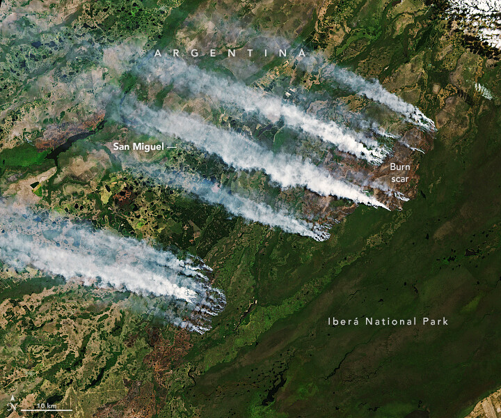 Fueled by a heatwave and prolonged drought, fires continue to burn in the Iberá National Park in northeastern Argentina.