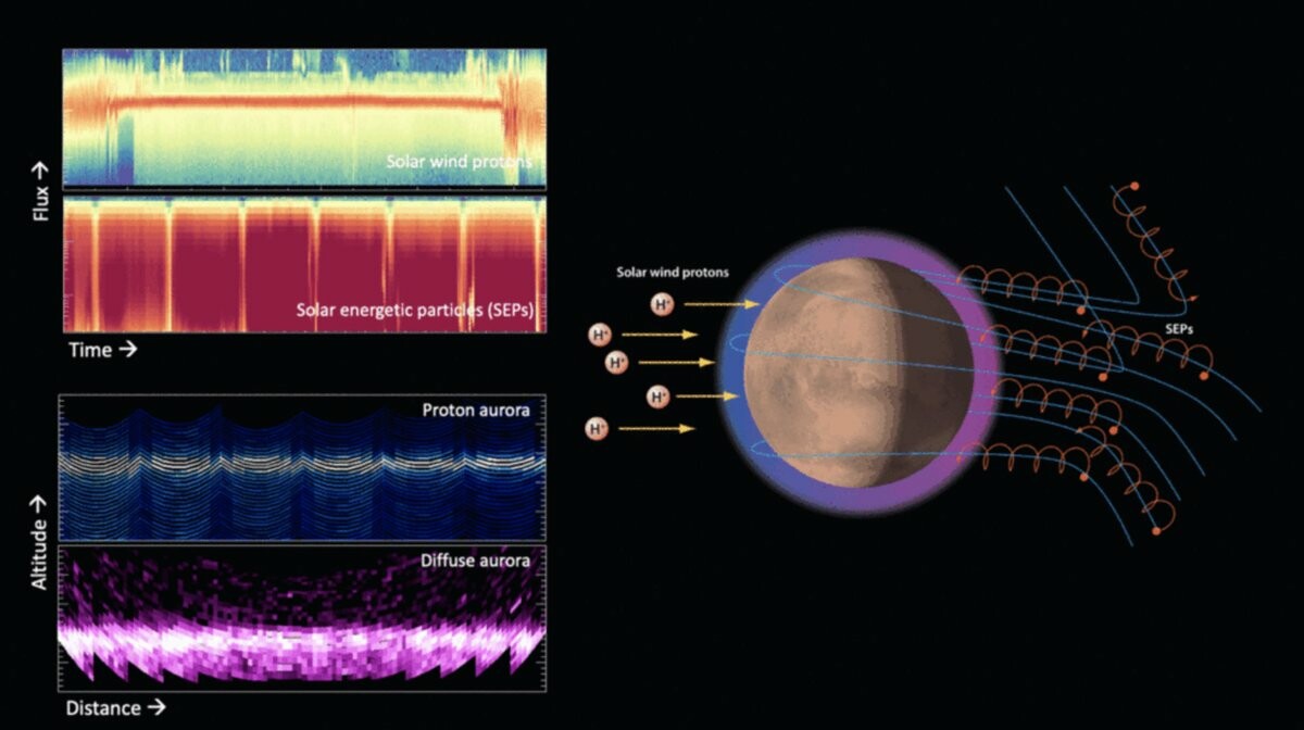 NASA’s MAVEN and the United Arab Emirates’ EMM missions have released joint observations of dynamic proton aurora events at Mars.Bill Steigerwald (NASA)