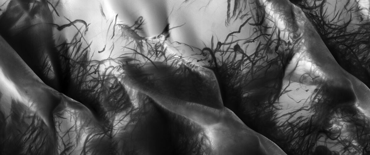 Cube-shaped snow, icy landscapes, and frost are all part of the Red Planet’s coldest season.NASA Mars Exploration