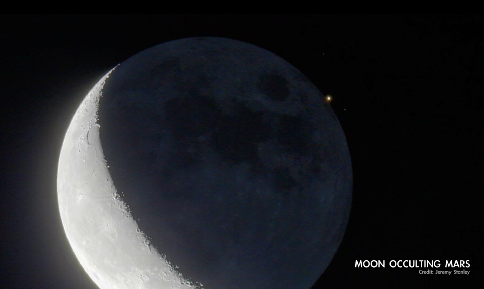Left: Earth in the evening sky of Mars, as seen by @MarsCuriosity. Right: Mars rising over Salt Lake City.