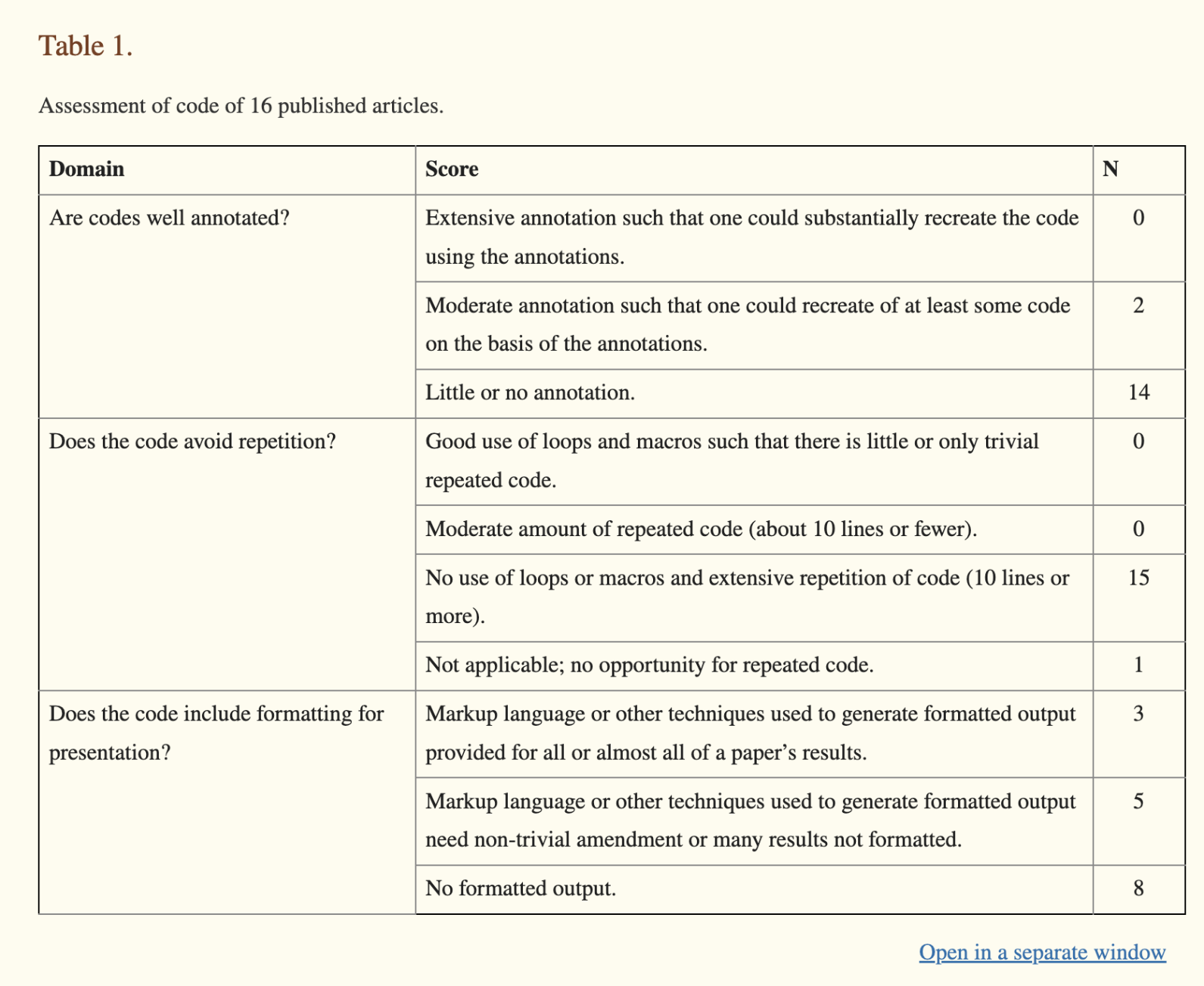 Interesting #paper on the availability of #statistical #code in European Urology papers. And a checklist to get us all thinking about how good the code we share is.