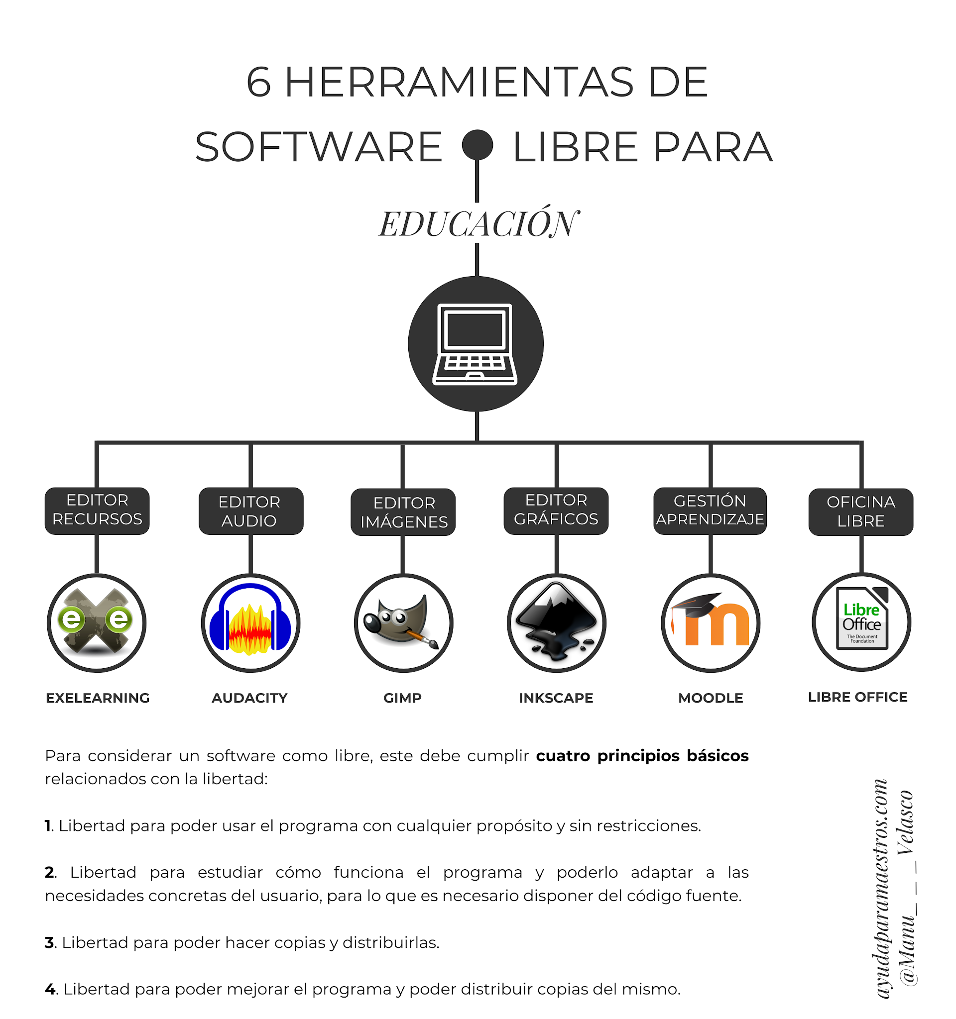 Para que un programa sea de #SoftwareLibre debe garantizar cuatro libertades: