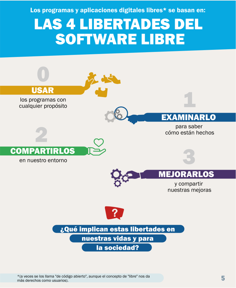 En las láminas te presentamos las libertades en las que se basan las tecnologías libres del control de las corporaciones.