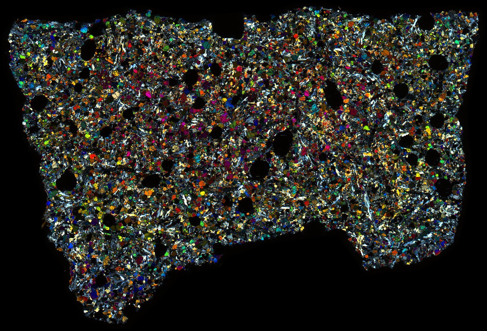 Northwest Africa (NWA) 5930 Meteorite Thin Section - XPL HDR Pathscan Enabler.