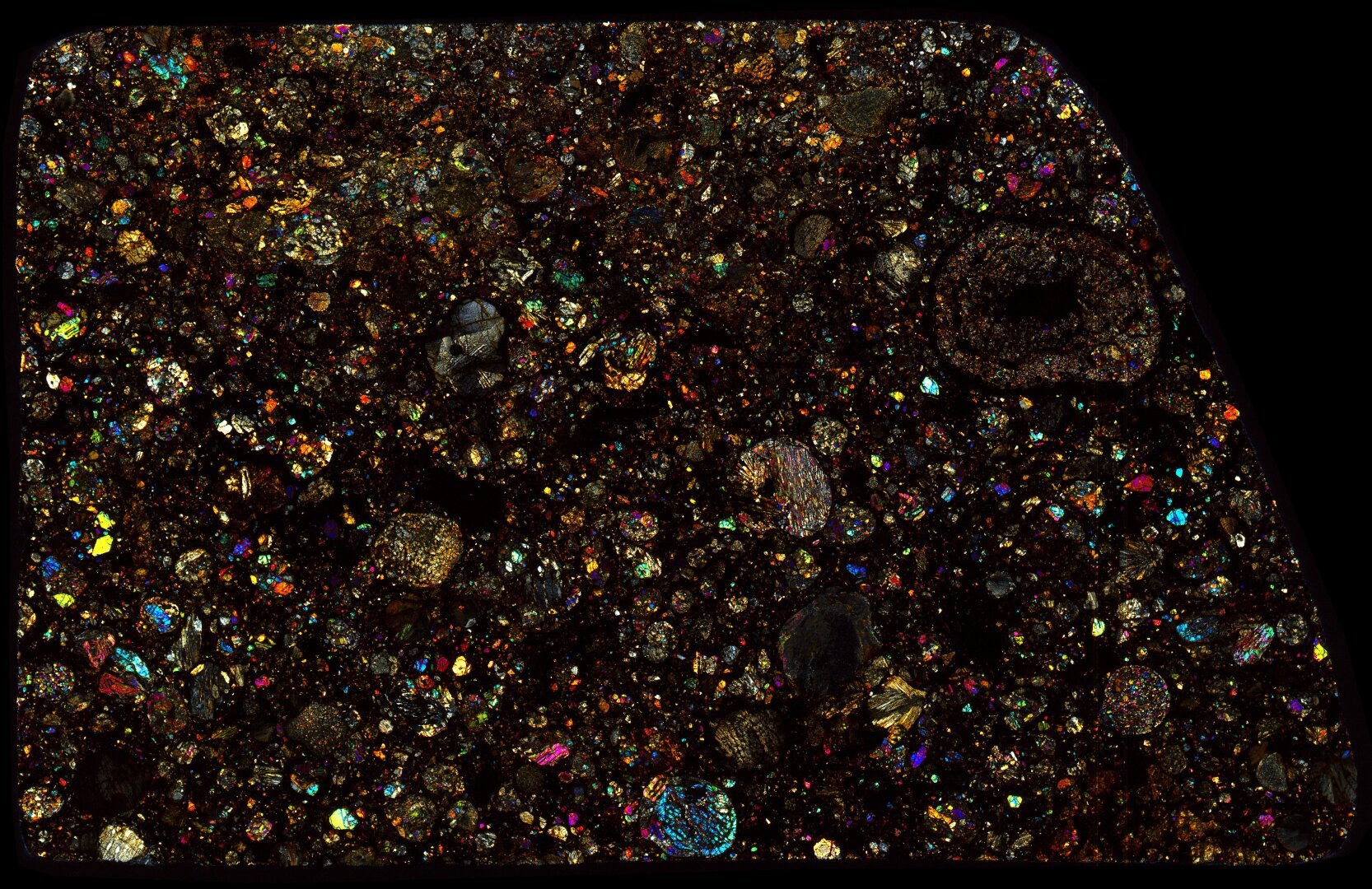 Northwest Africa (NWA) 8716 Meteorite Thin Section - XPL HDR Pathscan Enabler.