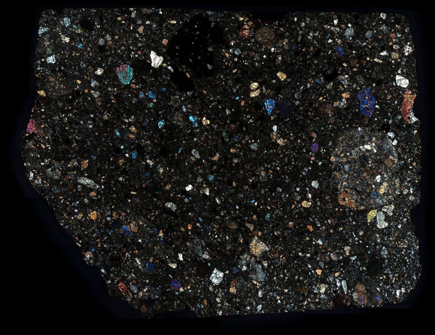 Northwest Africa (NWA) 8595 Meteorite Thin Section - XPL Mosaic.