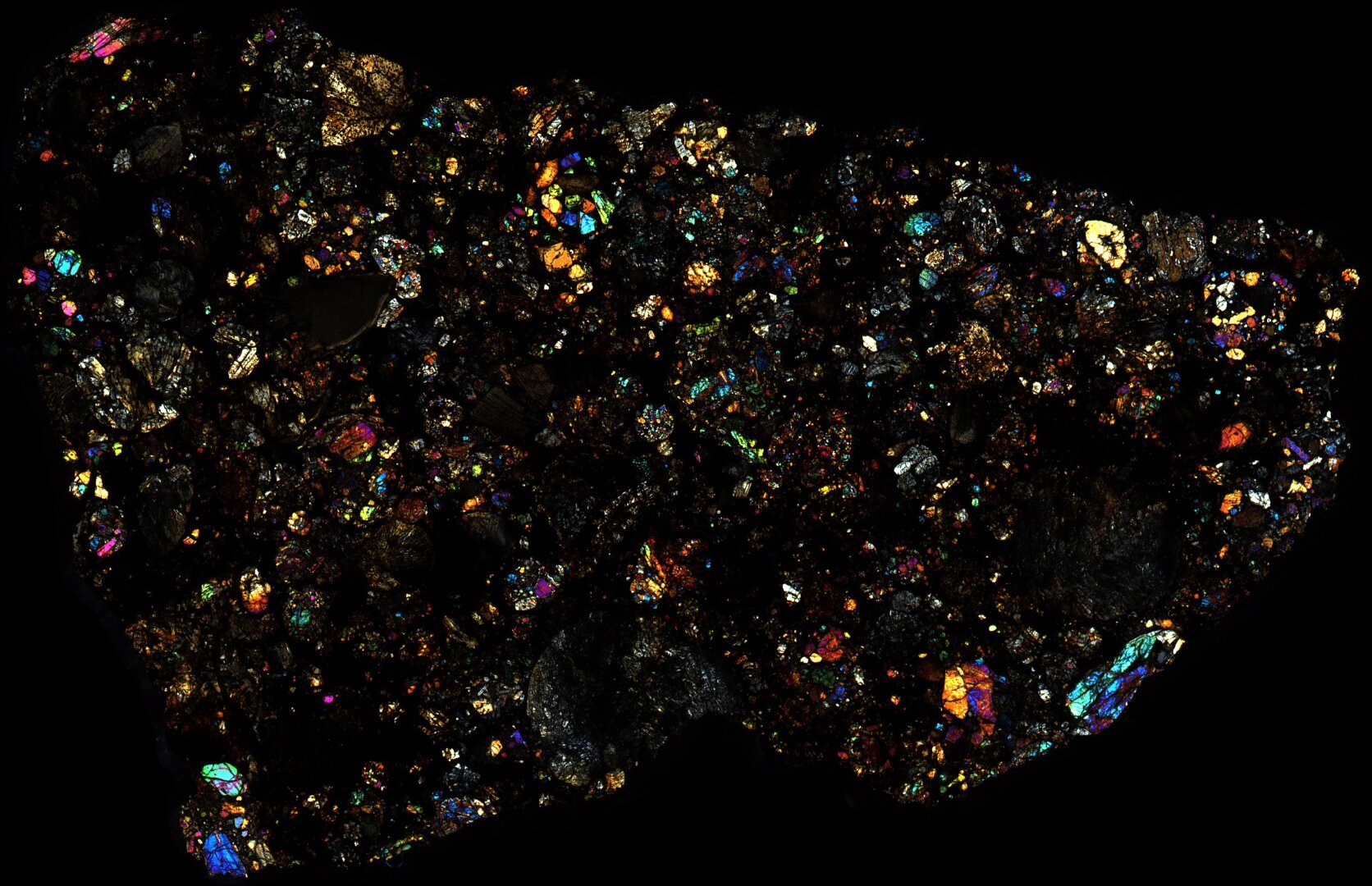 Northwest Africa (NWA) 1950 Meteorite Thin Section - XPL HDR Pathscan Enabler.