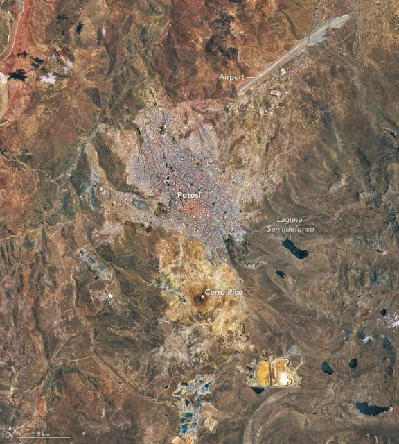 The Bolivian mining city—one of the highest cities in the world—grew at the foot of an eroded volcano riddled with silver.go.nasa.gov
