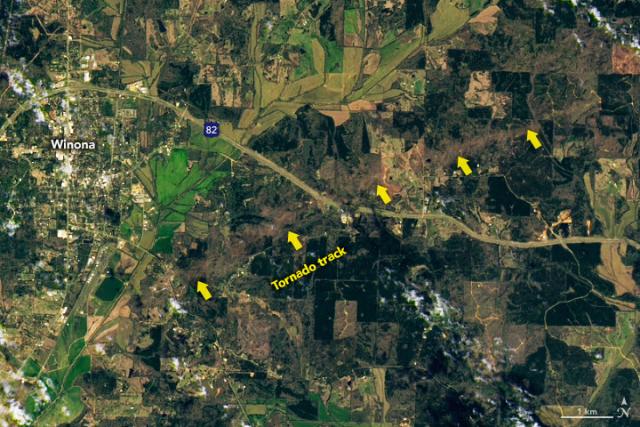A deadly tornado left a 29-mile-long path near Winona, which is visible in satellite images.go.nasa.gov