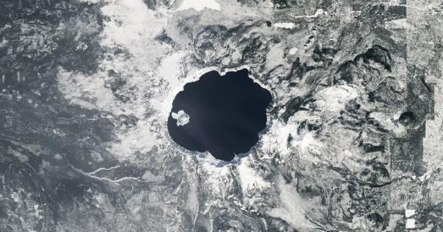 It’s Crater Lake in Oregon! At 1,943 feet (592 meters) deep, Crater Lake is the deepest lake in the United States and among the deepest in the world. #Landsat captured this picture of the lake on March 18, 2023.