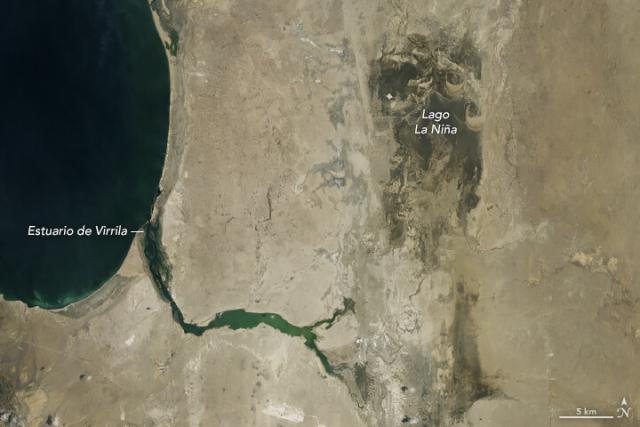 These #Landsat images show before (left) and after (right) flood waters from two nearby rivers filled Lago La Niña. 🌧️ go.nasa.gov/40XmxAN