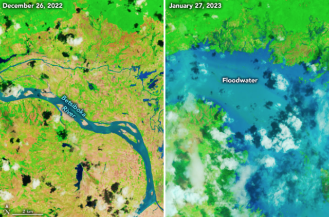 #Landsat 8 captured these images before the canal widened (left) in 2019 and after in 2023 (right).