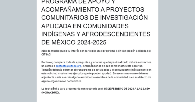 PROGRAMA DE APOYO Y ACOMPAÑAMIENTO A PROYECTOS COMUNITARIOS DE INVESTIGACIÓN APLICADA EN COMUNIDADES INDÍGENAS Y AFRODESCENDIENTES DE MÉXICO 2024-2025