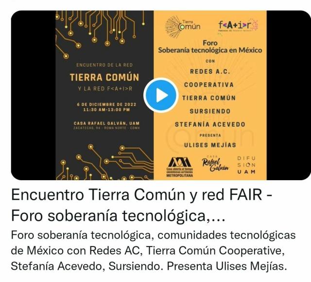 Encuentro Tierra Común y red FAIR - Foro soberanía tecnológica, comunidades tecnológicas de México