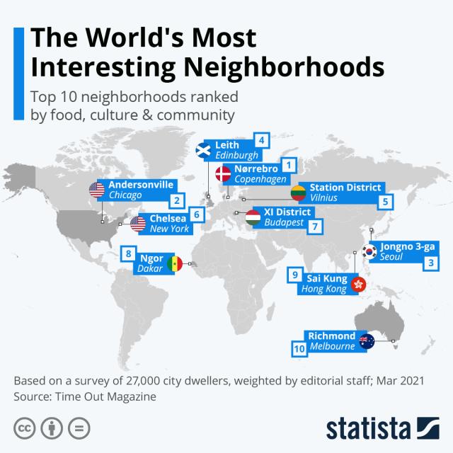This chart shows the top 10 neighborhoods ranked by food, culture and community.Florian Zandt (Statista)