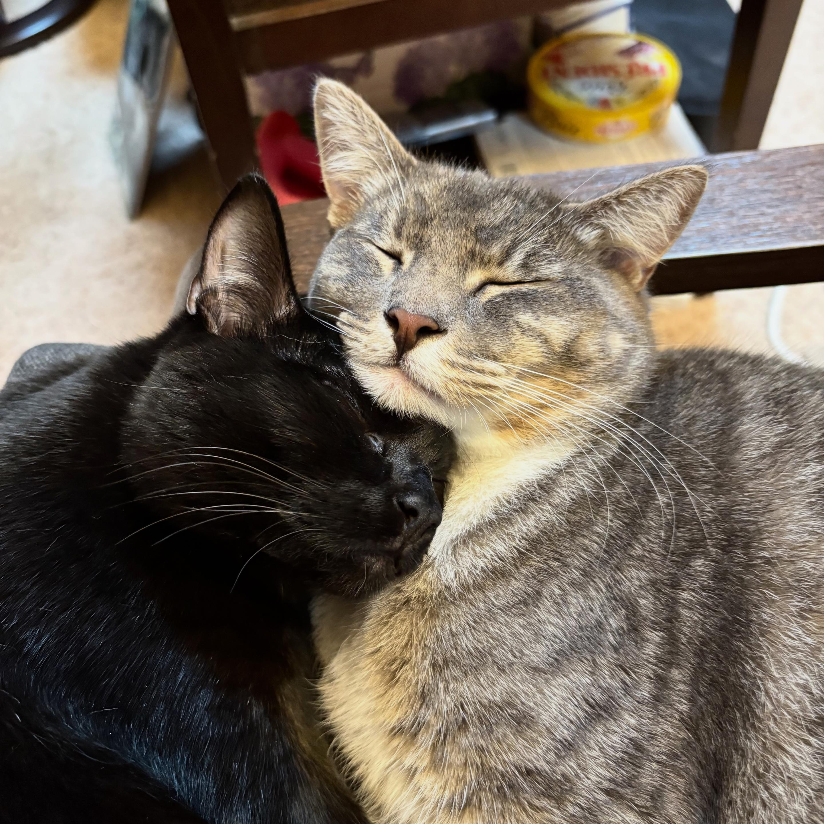 Also not captured by the picture compulsive purring as I walked up and found them cuddling here.
