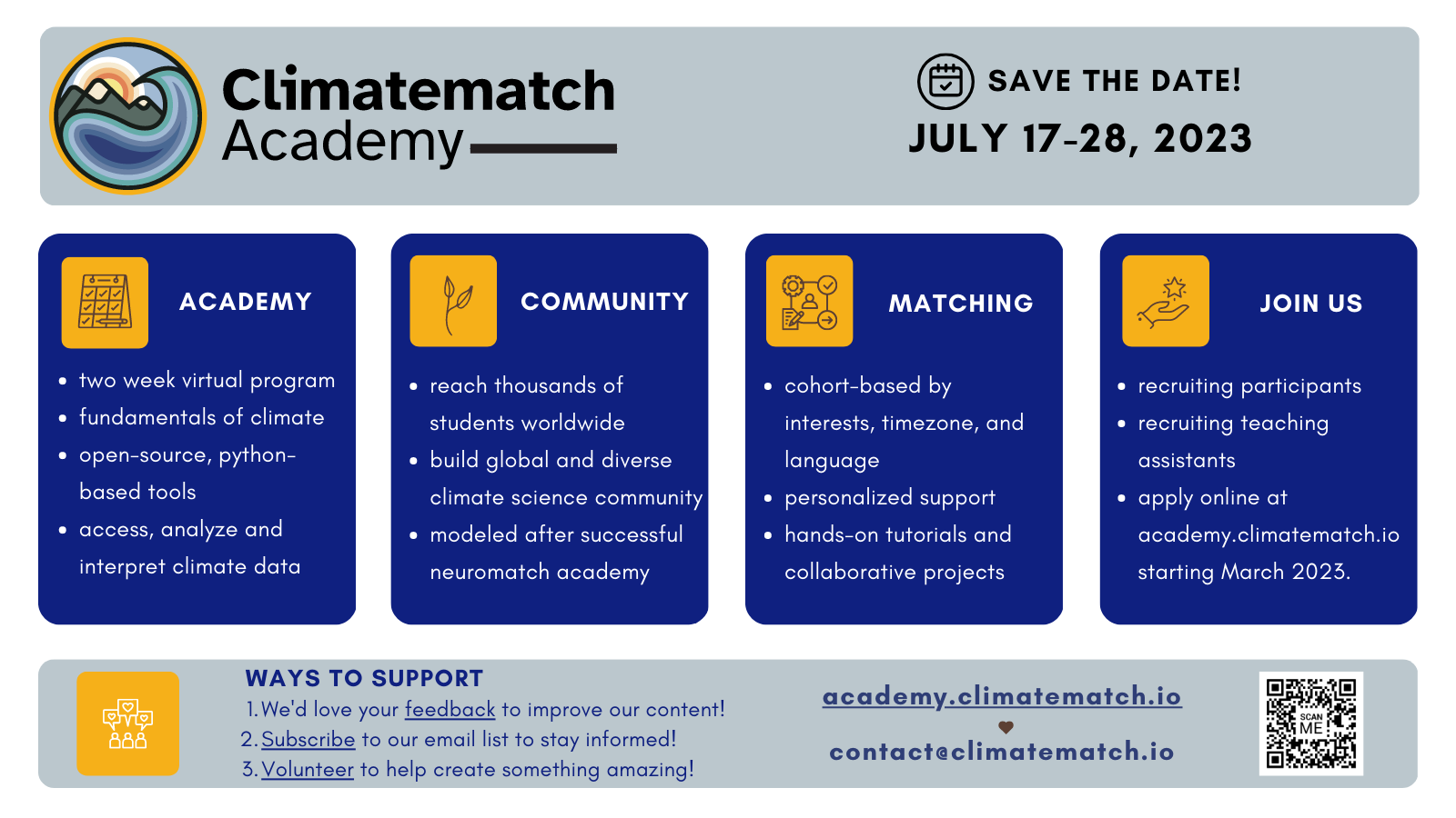 Climatematch Academy is a wide-reaching, inclusive and approachable program aimed to introduce computational methods for climate science.