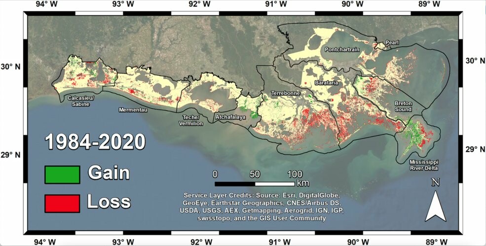 In a new study, scientists used #Landsat imagery from @nasa/@usgs to track shoreline changes and dramatic wetlands losses in Louisiana from 1984 to 2020.