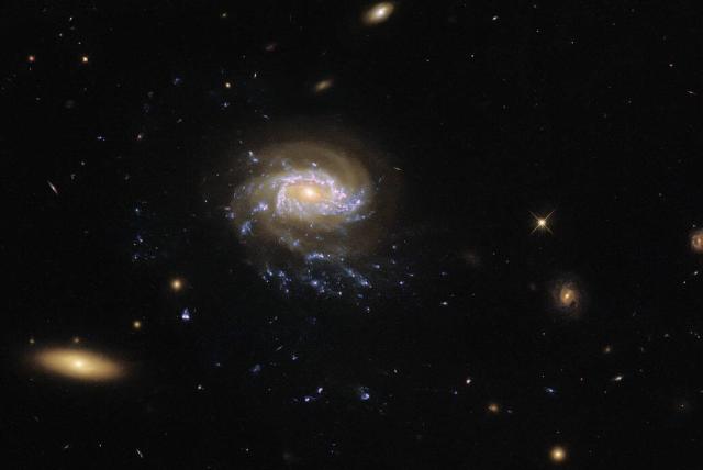 The barred spiral galaxy UGC 678 takes center stage in this image from the NASA/ESA Hubble Space Telescope.Andrea Gianopoulos (NASA)