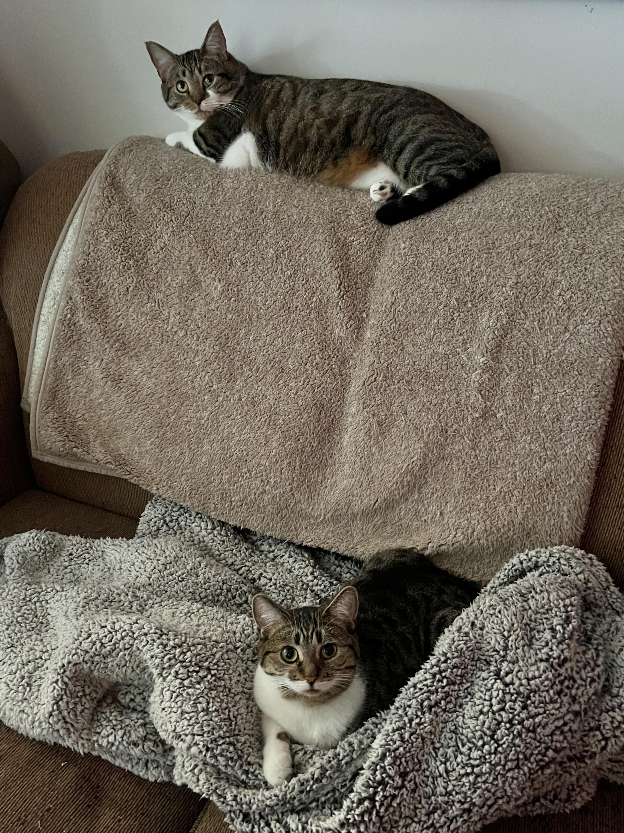 Also not captured by the picture compulsive purring as I walked up and found them cuddling here.