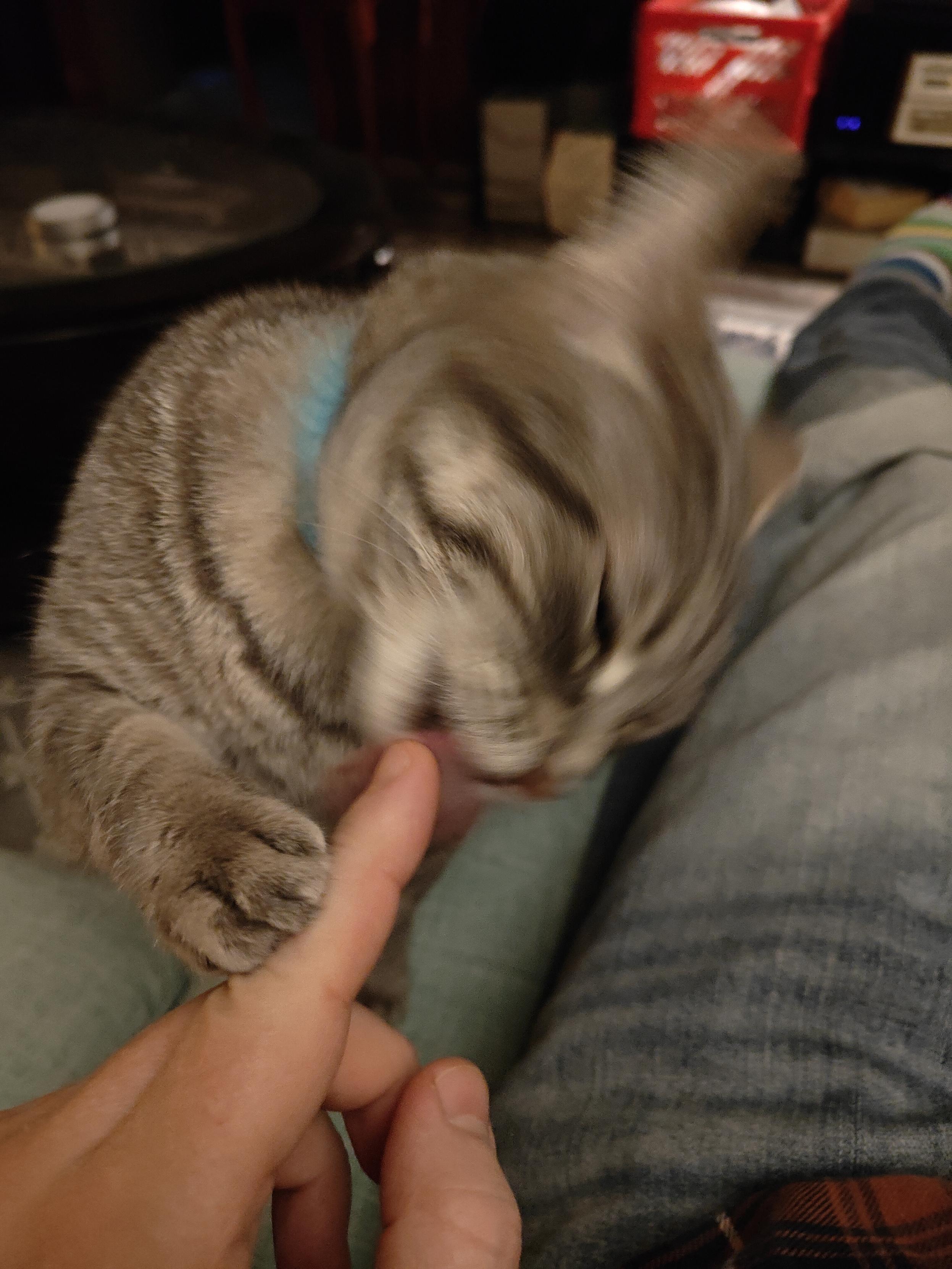 Bella loves to have the inside of her hind legs scratched (look at those air biscuits! 😻). Benny loves to use me as a mobile observation platform so he can survey his kingdom.