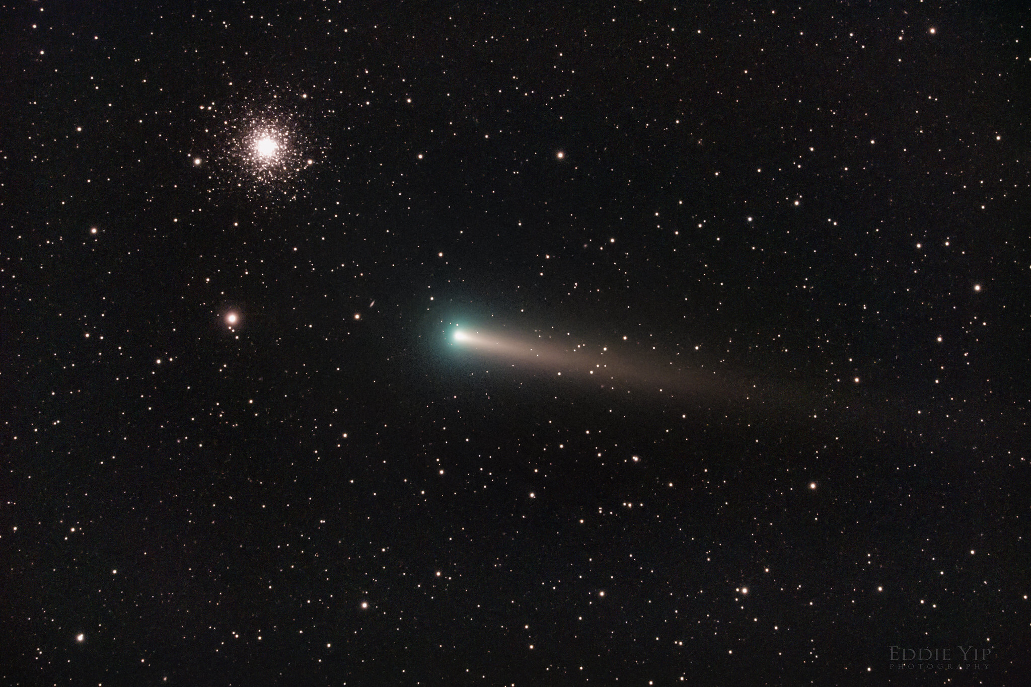"Comet C/2021 A1 Leonard with Messier 3 on December 3, 2021."