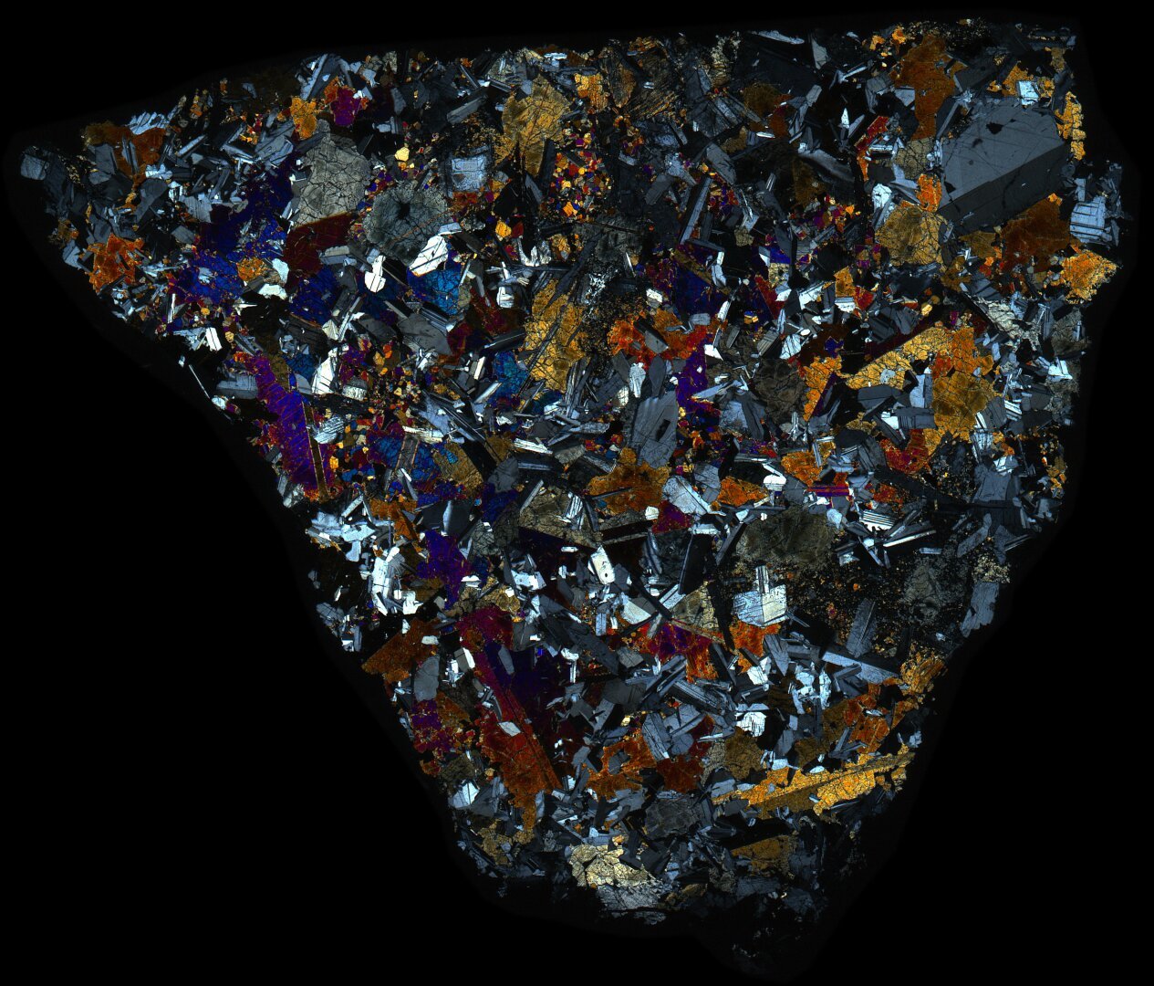Northwest Africa (NWA) 5000 Meteorite Thin Section - XPL HDR Pathscan Enabler.