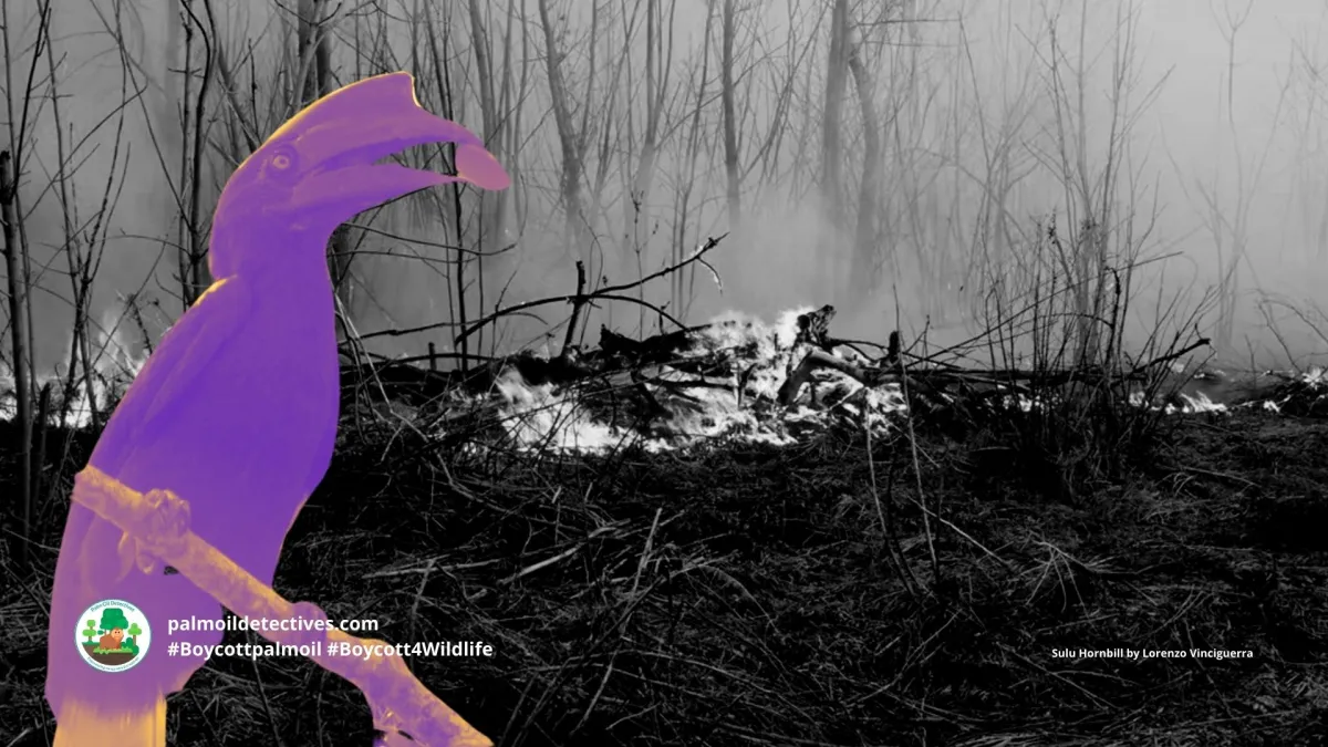 The Sulu Hornbill is one of the rarest birds in the world. They are large and almost entirely black except for a white tail, with a thick black bill, a black casque, and black skin around the eye. โฆPalm Oil Detectives
