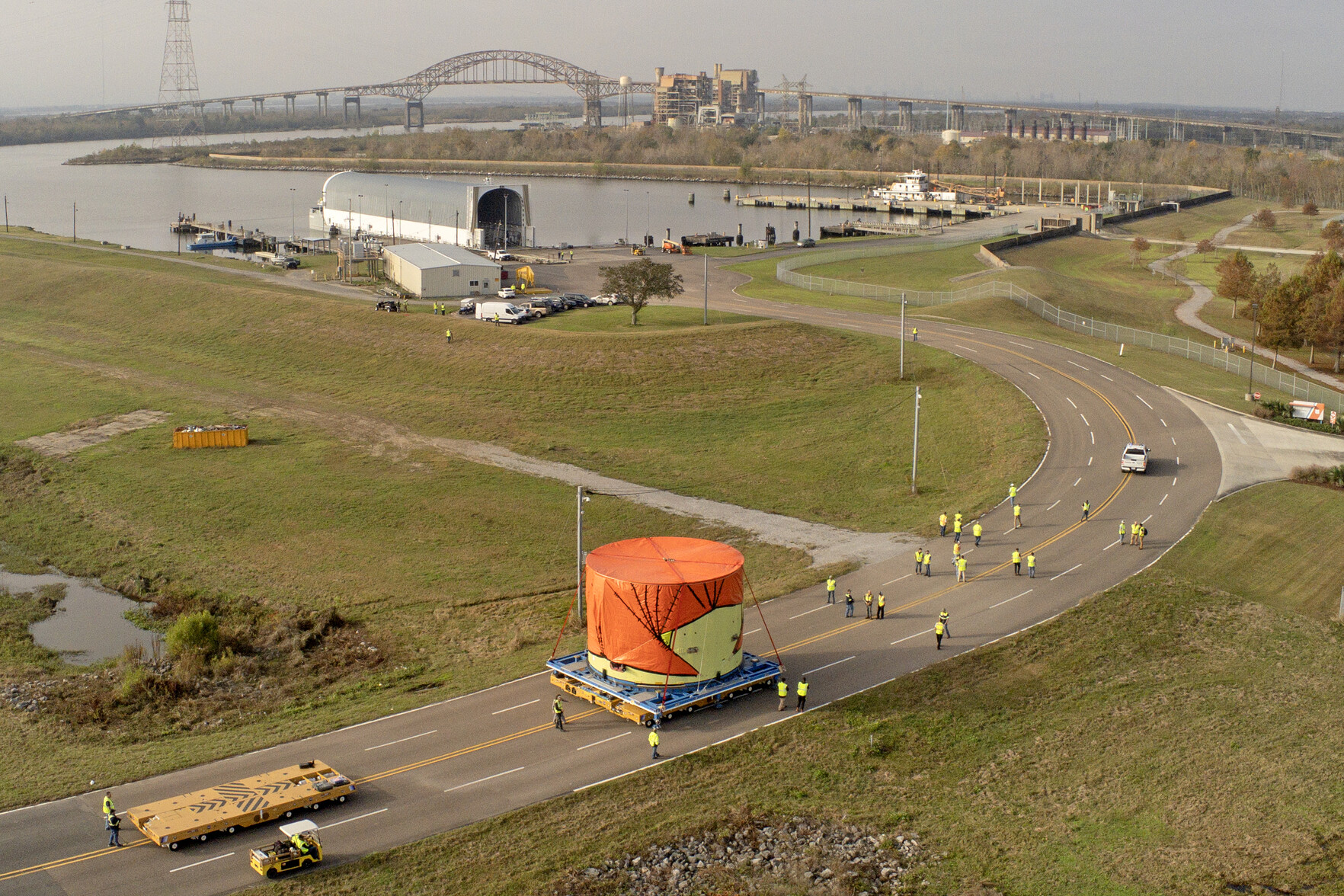 NASA Barge Delivers Transportation Stand for Crewed Artemis Mission