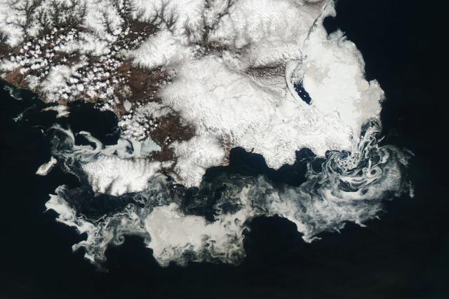 Ice breaking up off the Russian coast whirled at the whims of winds and currents.go.nasa.gov