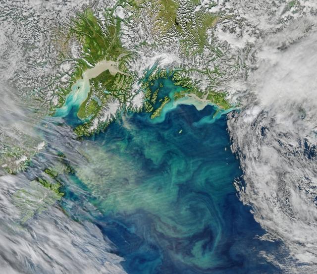 Turquoise swirls of phytoplankton developed over the course of two weeks in the shallow sea basin.go.nasa.gov
