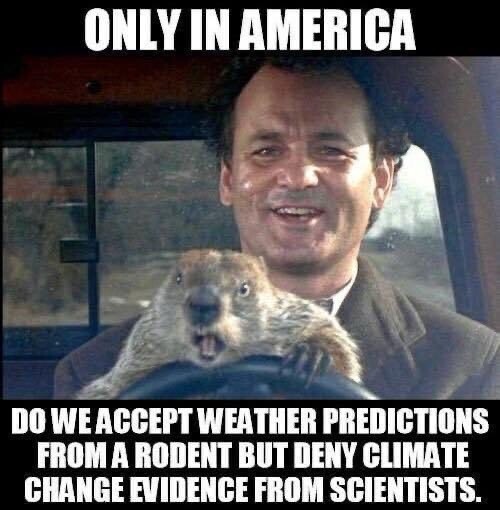 “Only in America do we accept weather predictions from a rodent but deny #ClimateChange evidence from scientists.”