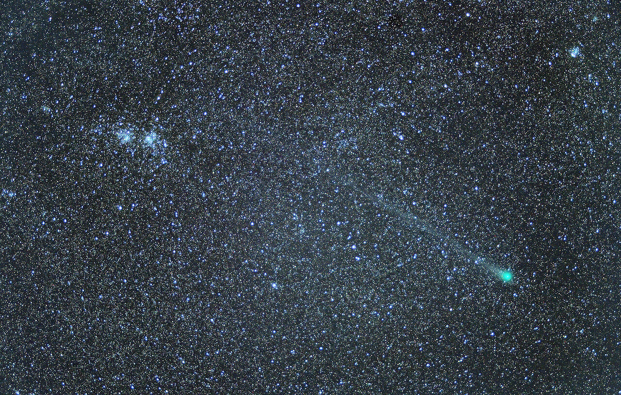 Comet C2014/Q2 (Lovejoy) and the Perseus Double Cluster on February 27, 2015.
