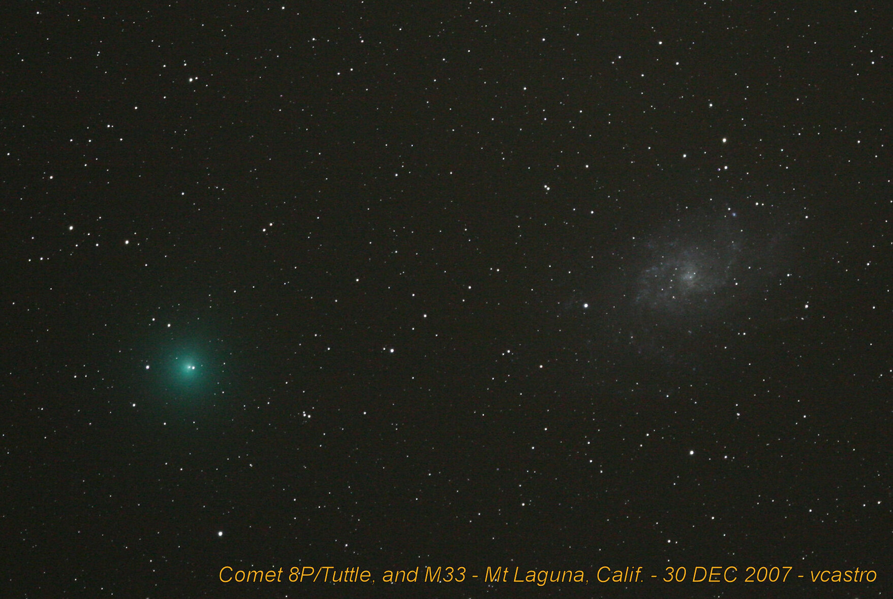 Comet 8P/Tuttle, and M33 Triangulum Galaxy, as seen on December 30, 2007.