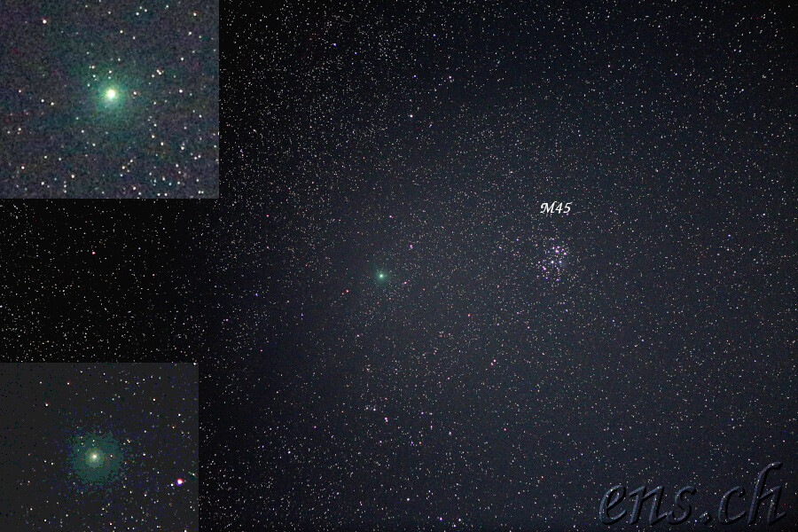 Comet 46P/Wirtanen near M45 (Pleiades) on December 17, 2018.