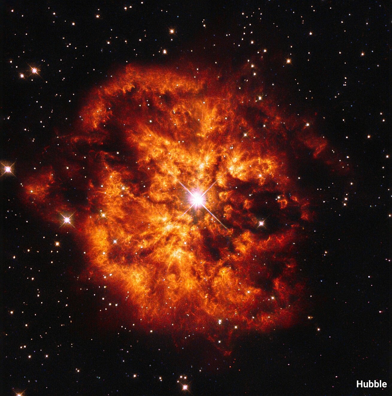 These flower-like images from Hubble and @NASAWebb show the dying star Wolf-Rayet 124 as it casts off outer layers of material.