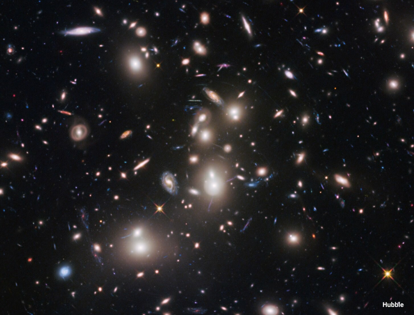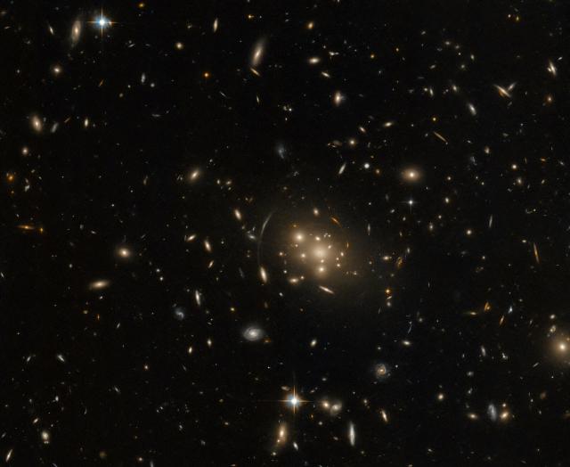 A massive galaxy cluster in the constellation Cetus dominates the center of this image from the NASA/ESA Hubble Space Telescope.Andrea Gianopoulos (NASA)