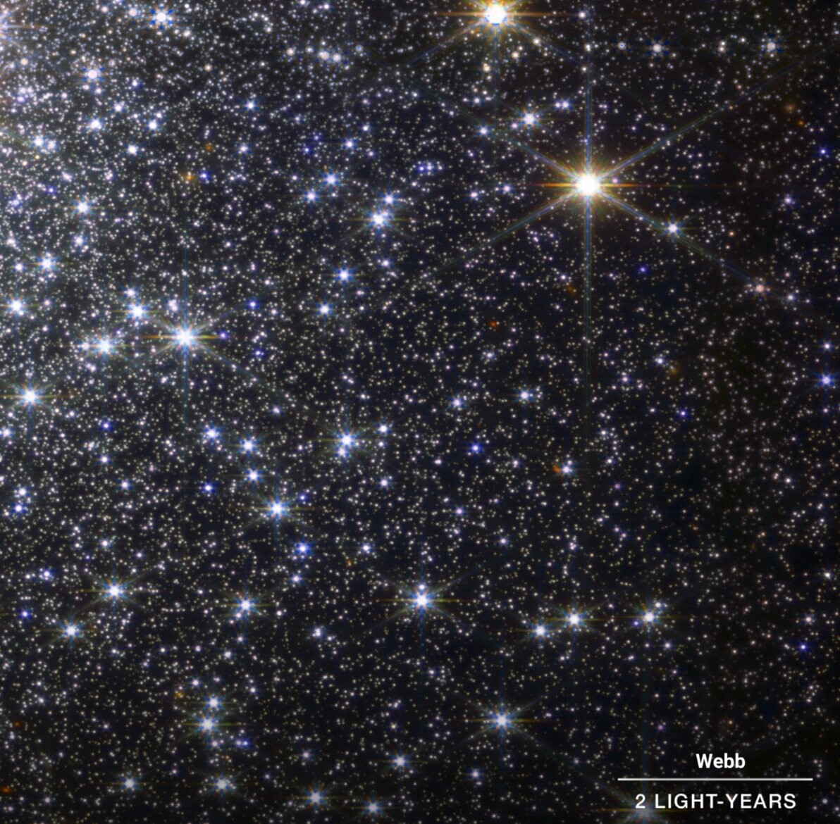 If you're curious about the empty portion, the center of M92 is very bright, so Webb isn’t able to capture it at the same time as the fainter stars at the edges.