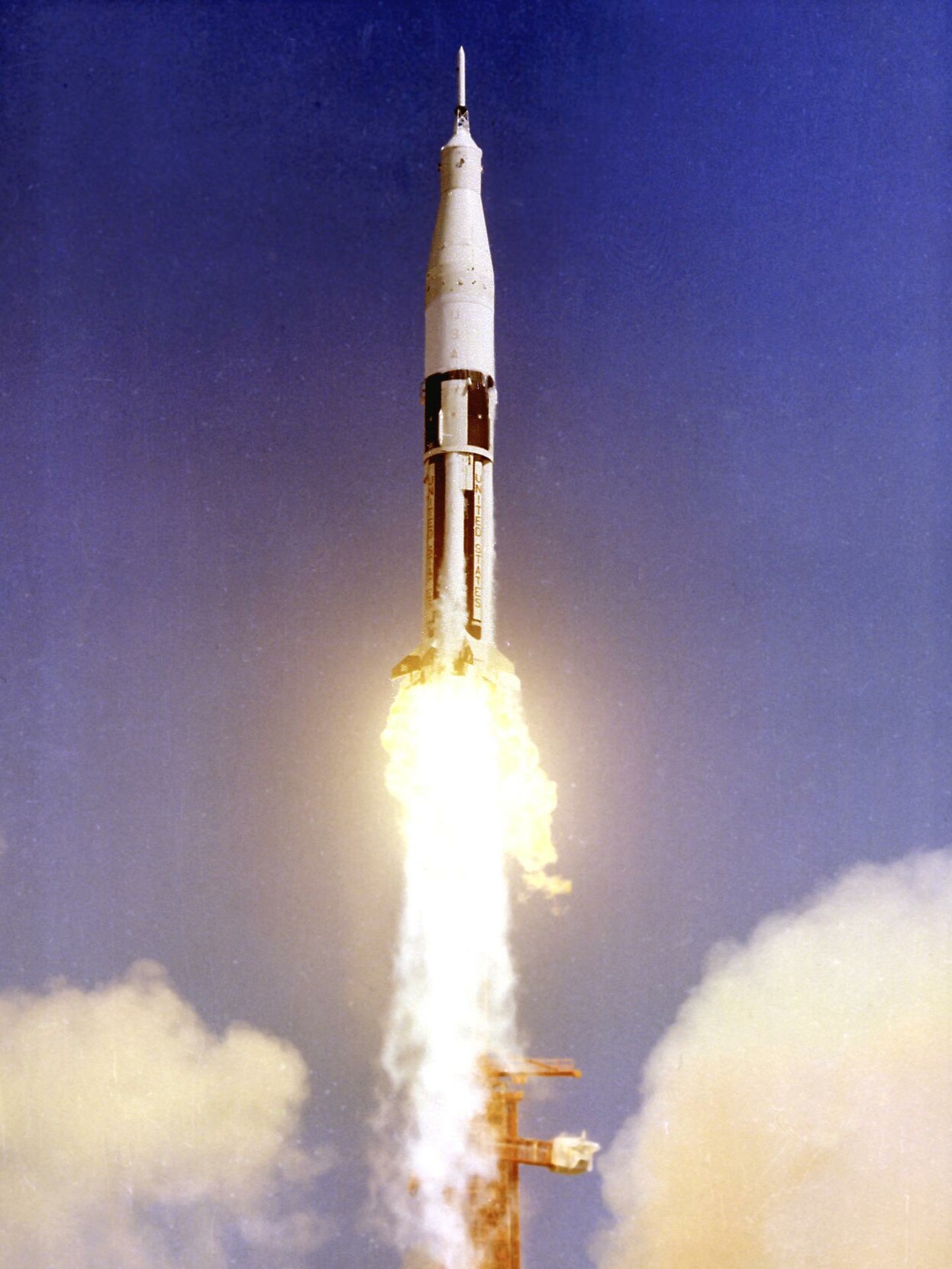 The first uncrewed spaceflight test of a production Apollo Command and Service Module (CSM), and the first launch of a Saturn-IB rocket, took place on Feb. 26, 1966.Kelli Mars (NASA)