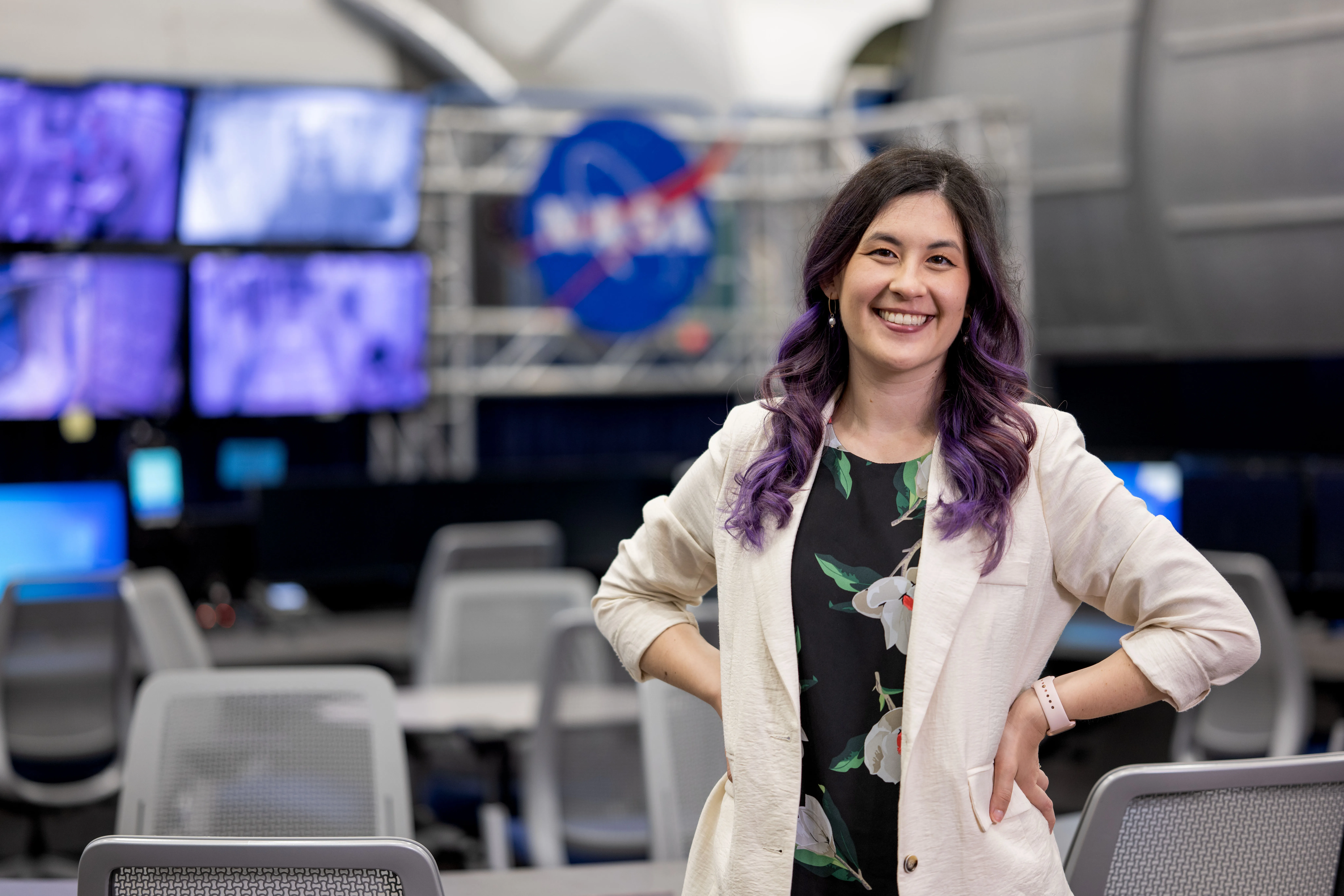 Casey Denham, aerospace engineer with the Systems Analysis and Concepts Directorate at NASA’s Langley Research Center in Hampton, Virginia, works with tribalNASA