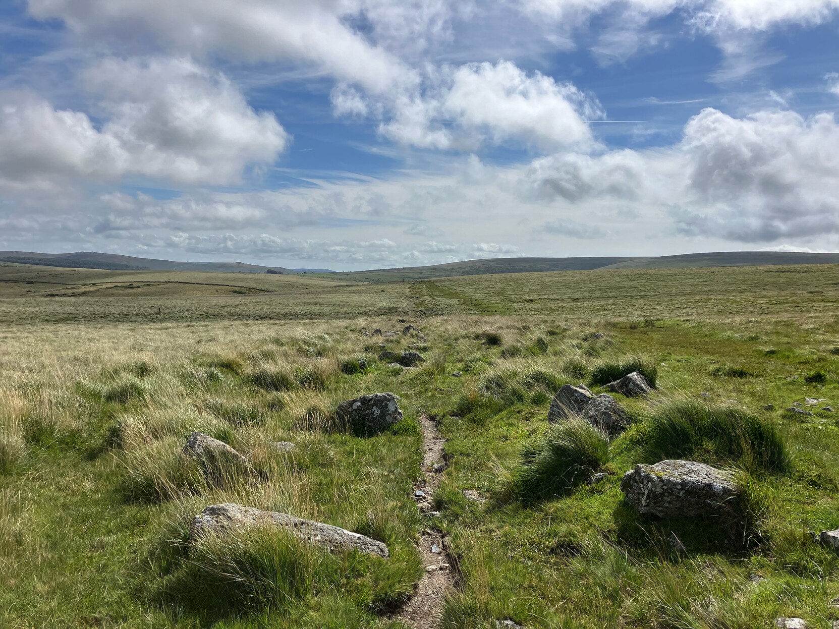 I have nothing to say about this other than to describe it. Itโs the view from the road on the way down to the beach near here. The sun wasnโt setting. It was only about 13:30hrs. However the sun is very low in the sky at this time of year. The clouds are coloured by the pale sun and the sea shimmers with the reflection of it. In the foreground is a grassy slope that goes down to the gate which we use to access the seashore. In the far distance is the Island of Rhum.