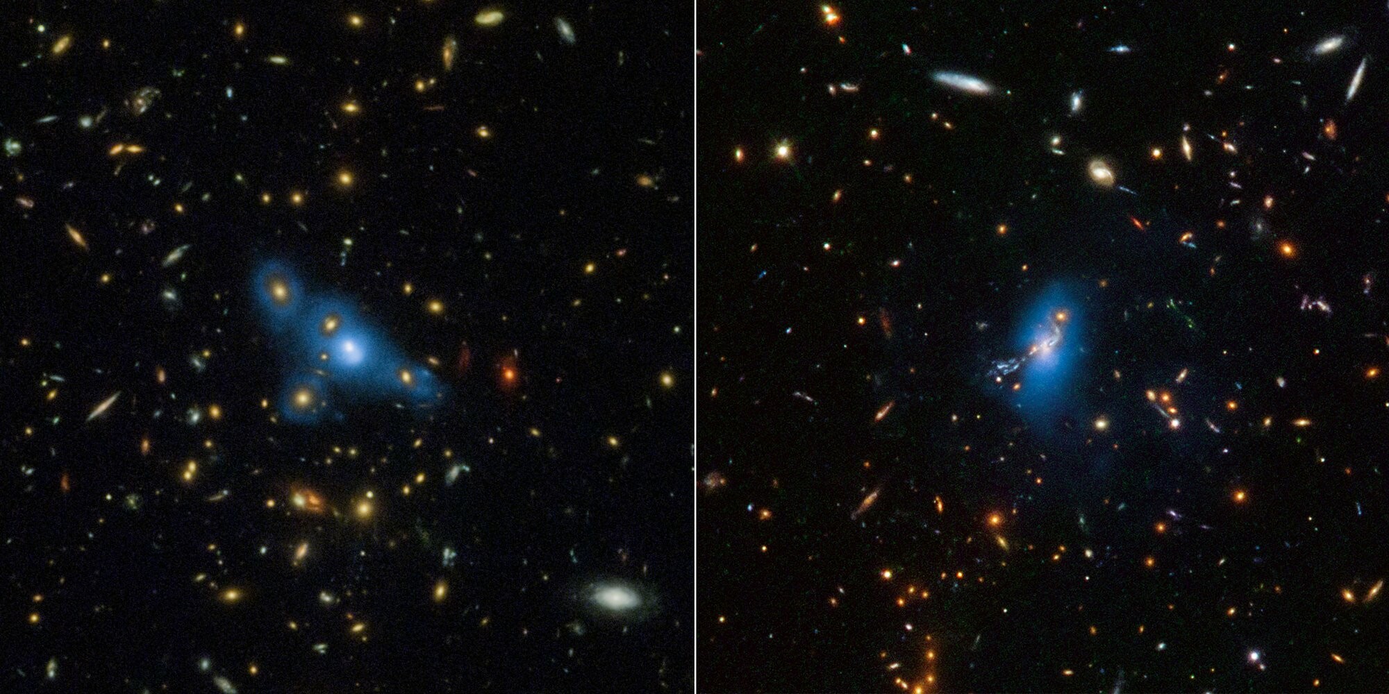 The blue glow from @NASAHubble data reveals stars wandering across galaxy clusters. Billions of years ago the stars were shed from their parent galaxies and now drift through space. go.nasa.gov/3JuqFST