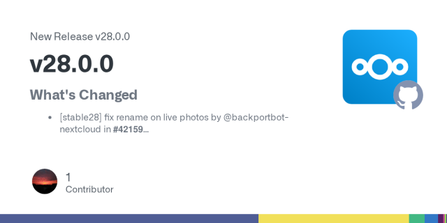What's Changed [stable28] fix rename on live photos by @backportbot-nextcloud in #42159 [stable28] fix(dav): Prevent out-of-office event time drifts by @backportbot-nextcloud in #42163 Revert "[st...GitHub
