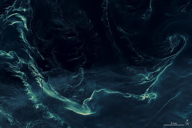 Pine pollen floating on the currents and waves is responsible for these patterns in the Baltic Sea, taken by the @esa Sentinel-2A satellite in May 2018. go.nasa.gov/42dRCAA