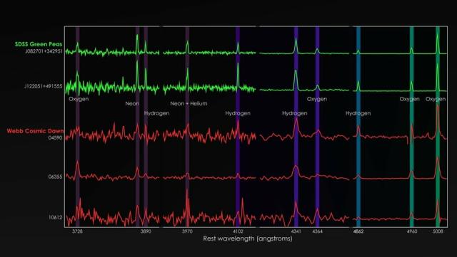 A new analysis of distant galaxies imaged by NASA’s James Webb Space Telescope shows that they are extremely young and share some remarkable similarities to “green peas,” a rare class of small galaxies in our cosmic backyard.Francis Reddy (NASA)