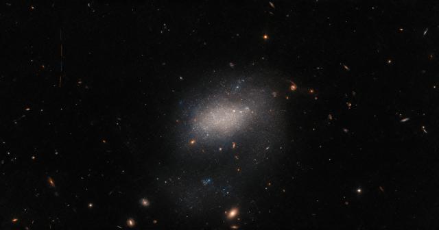A host of astronomical objects are scattered across this image from the NASA/ESA Hubble Space Telescope. Background galaxies ranging from stately spirals to fuzzy ellipticals are strewn across the image.Andrea Gianopoulos (NASA)